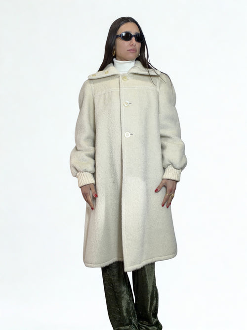 Cappotto Vintage Panna in Lana e Lama – '80